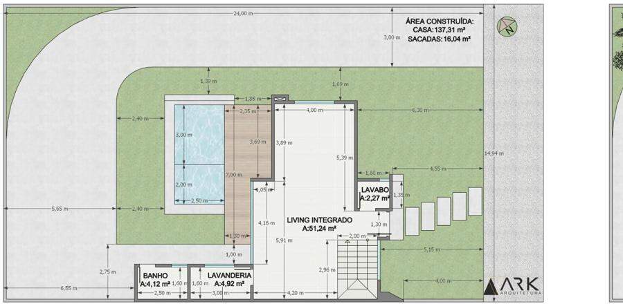 Área Total do Terreno 357,60m² : 14,90m de largura X 24,00m de comprimento.